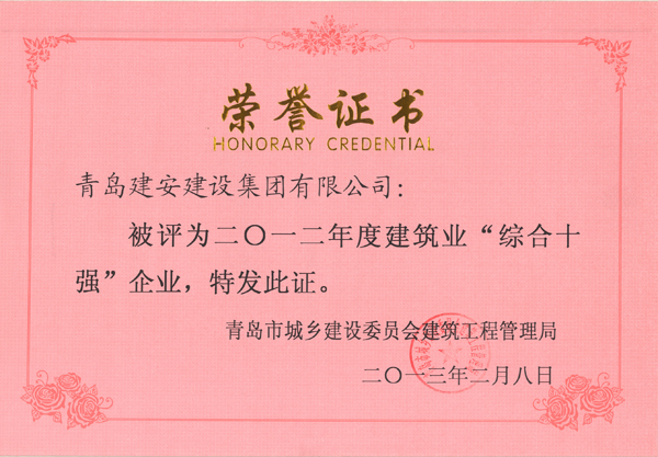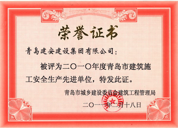 青岛市2007-2009年度“精品工程”创大红鹰188070.COm作突出贡献单位