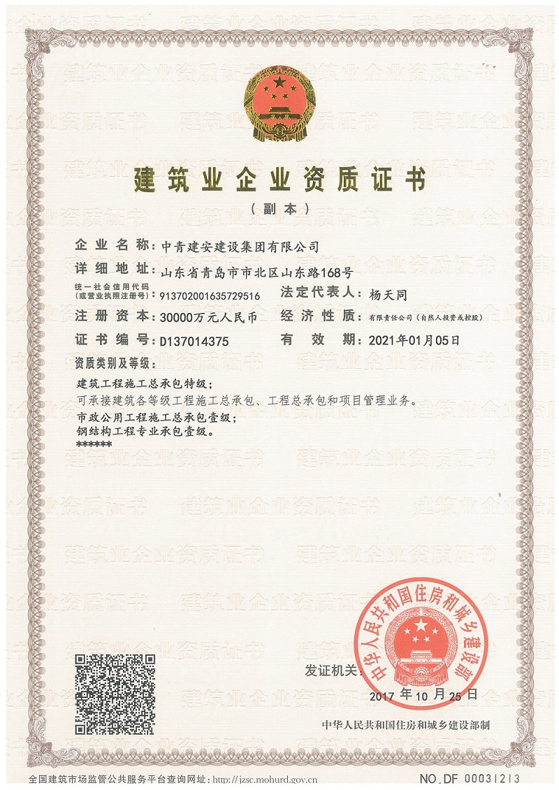 建筑工程施工总承包特级
